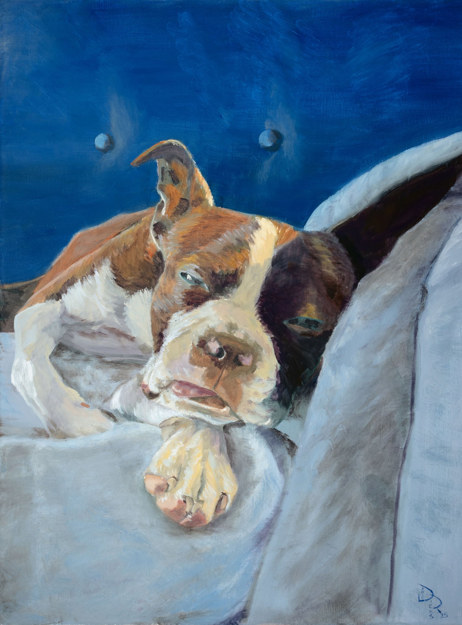 Through all my work, I hope to create art that feels both personal and shared. My paintings are an exploration of what it means to feel, to remember, and to connect. I invite you to find your own story within them.