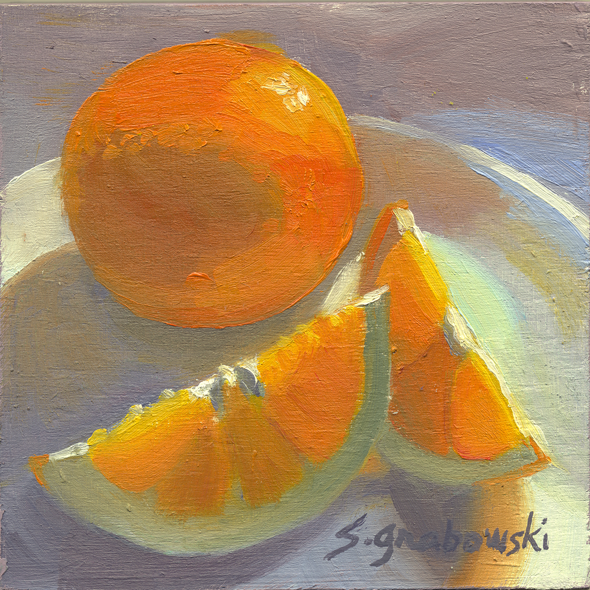 I’ve been making art since I was a young child, and after all this time, I can now identify that my inspiration is light: how it glows through a breaking ocean wave, or turns a simple piece of fruit on one of my plates into so many surprising colors. My subject does not need to be a shockingly beautiful place or thing. It can be a suburban street, or my kitchen counter in the early morning. I see the beauty in the everyday things we all see, and invite you to see it too.
